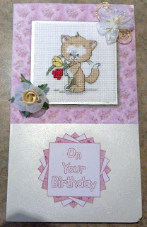 I also quickly made up a birthday card to send to the UK as part of the Craftbubble "Crazy for Kitties" birthday exchange.  I had previously stitched the "Kiri kitten" so I just had to pull it all together as a card.  I spent a lovely Friday morning doing the card while the weather was trying to blow the backyard away.  I recently bought the "Ultimate Crafter's Companion Pro" so I used that to fold and score my cardstock.  I also watched the instructional DVD to see what else you can do with it.  I don't make a lot of cards but it does help to have the Ultimate Pro to do some of the different folds.  Not sure how creative I will be with it but you never know!