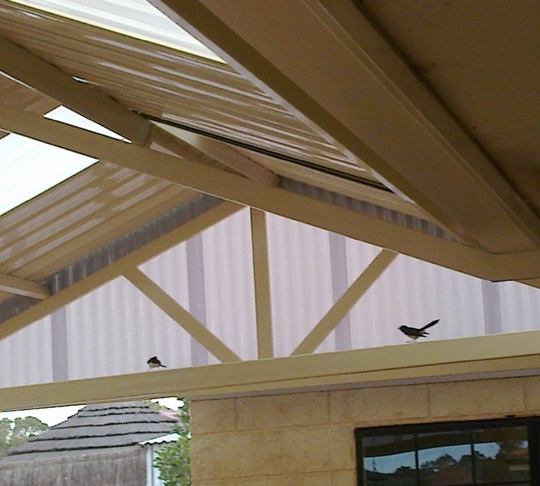 Willie Wagtail sitting on new patio gable